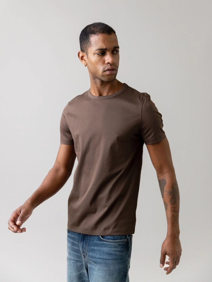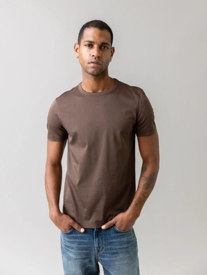 La camiseta de Mos Mosh está disponible en color blanco, gris claro, azul marino, azul grisáceo, marrón y negro.