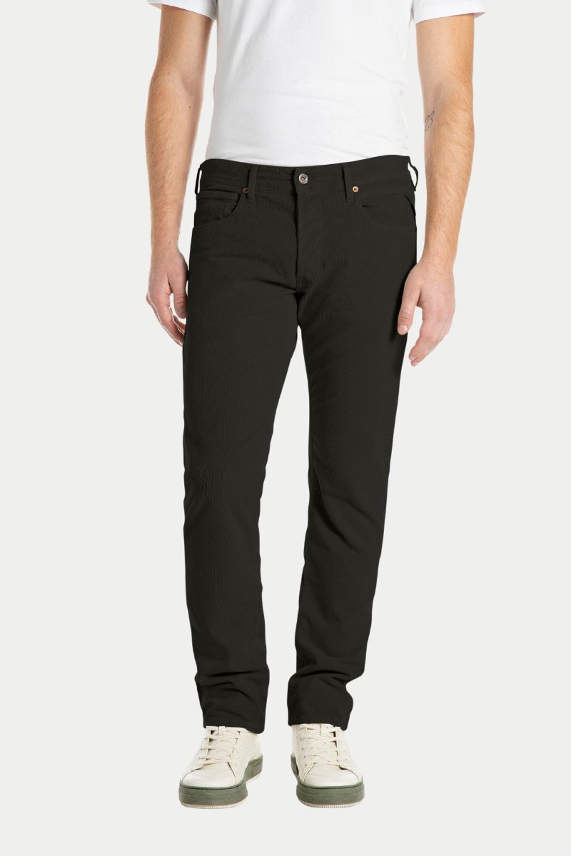 Este vaquero de pana Replay tiene 5 prácticos bolsillos y una clásica bragueta con cremallera. Son de corte regular, tienen la doble trabilla trasera y el logotipo de la marca.