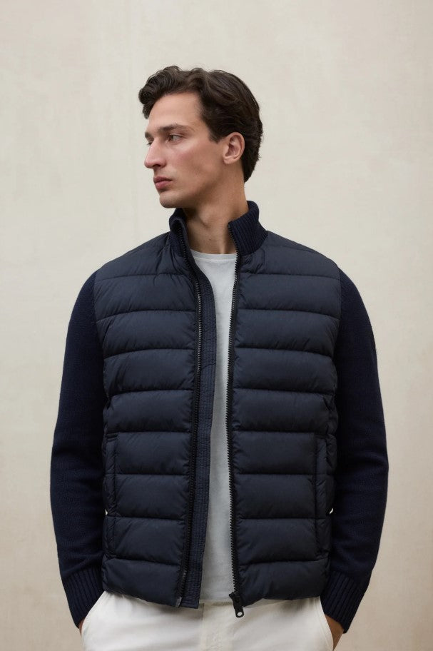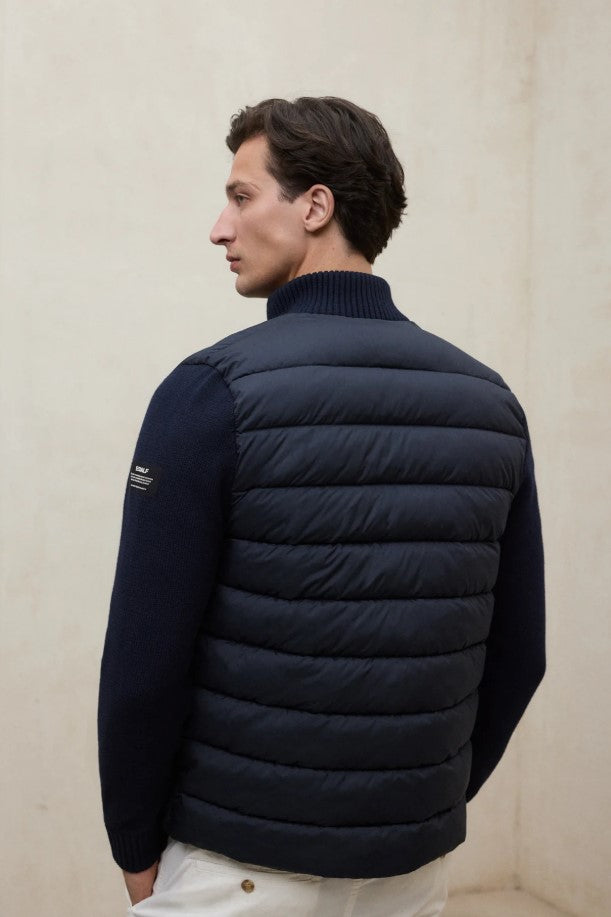 La chaqueta Bimi de Ecoalf está hecha principalmente de poliéster reciclado. Su diseño combina las mangas de punto con la parte acolchada del centro, haciendo que sea una chaqueta atemporal perfecta para cualquier ocasión. Incluye el logo de la marca en la cremallera y en la manga.